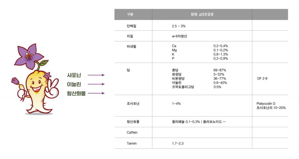 – 인삼은 토닉, 도라지는 호흡기와 장 건강입니다.
