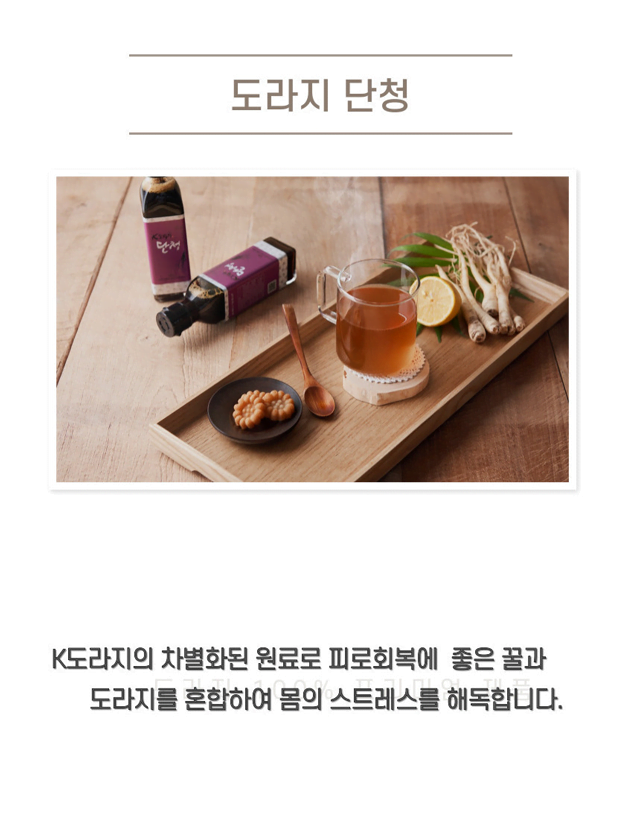 엄격한 기준으로 만든 우리의 대표적인 뿌리차 ‘K-도라지’ 제품을 소개합니다.