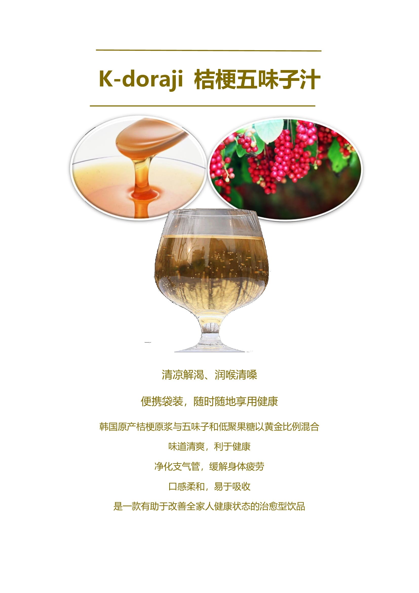 下面为大家介绍以严格标准制成的,以桔梗为主原料的K-doraji代表性产品.