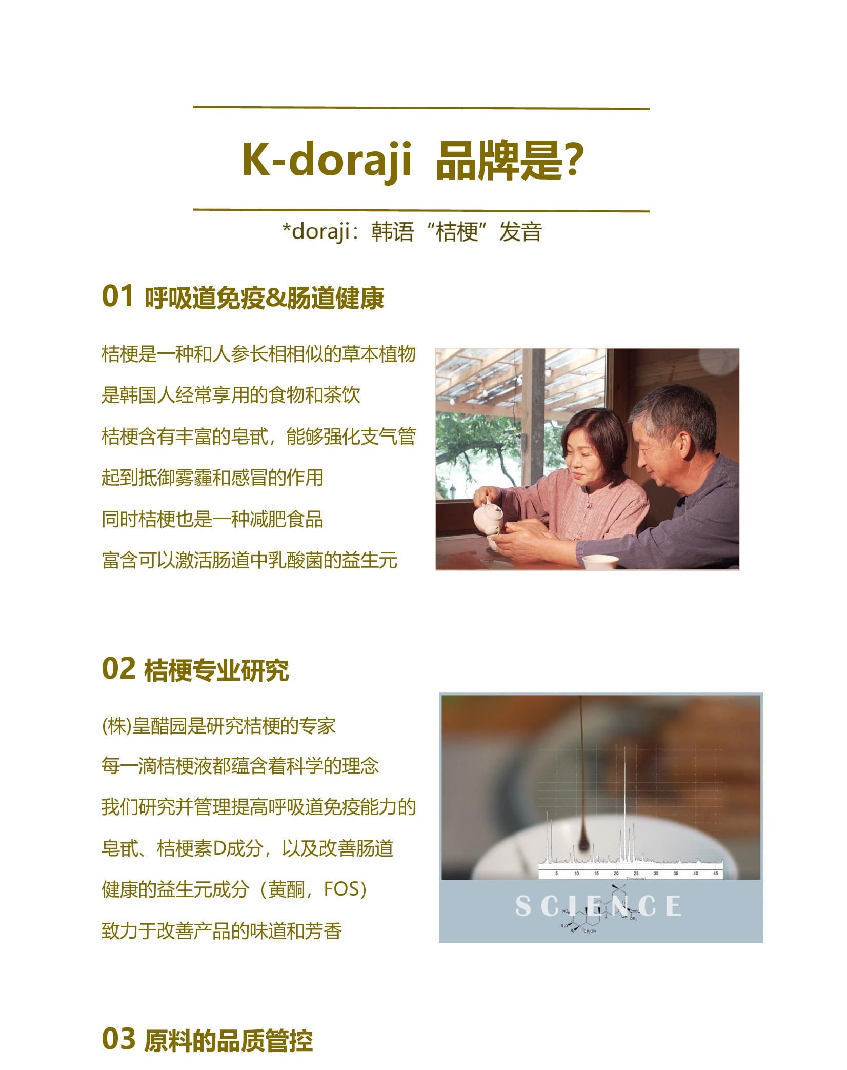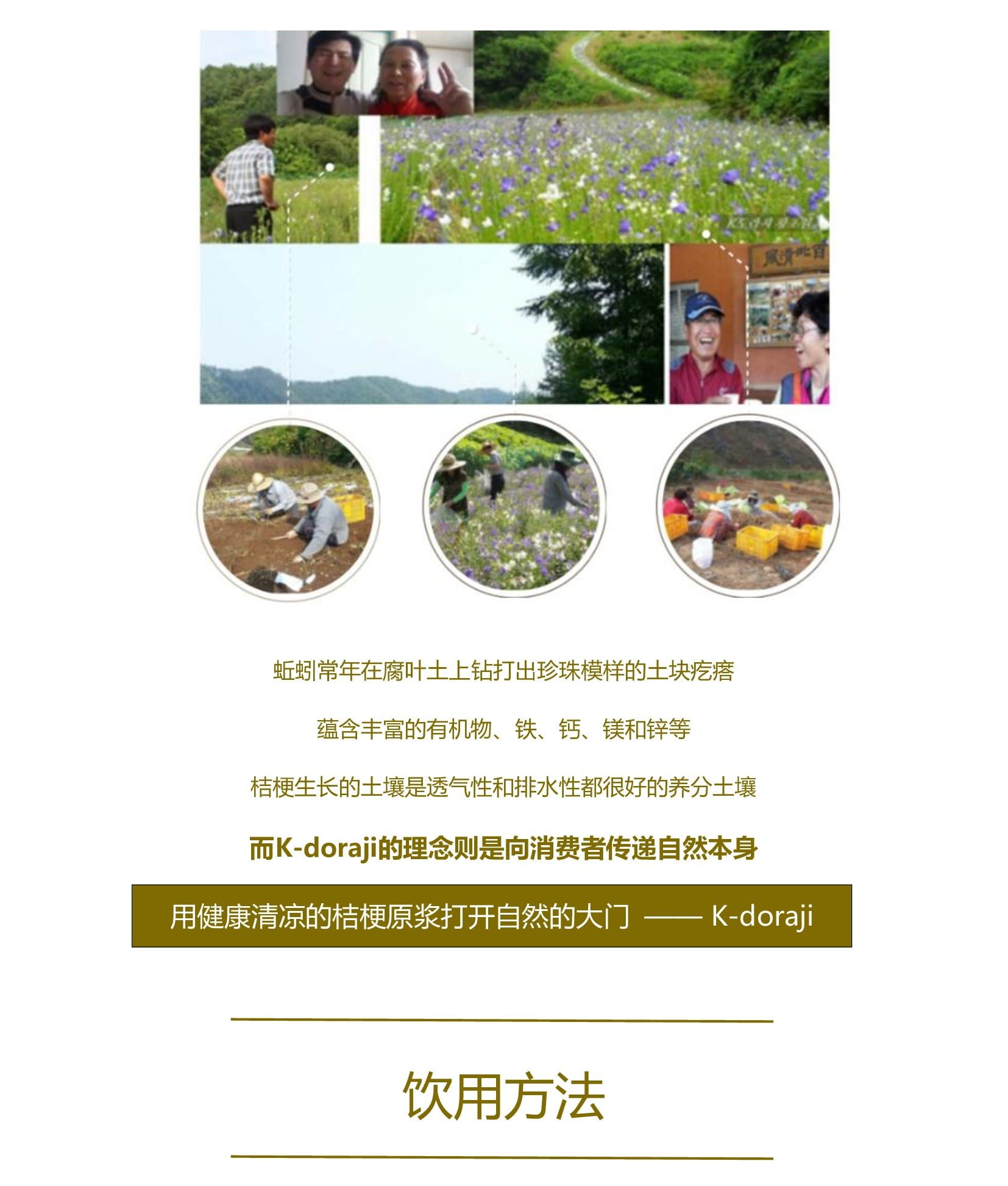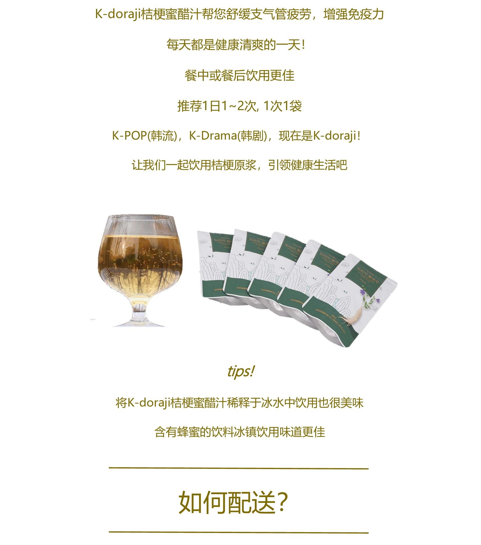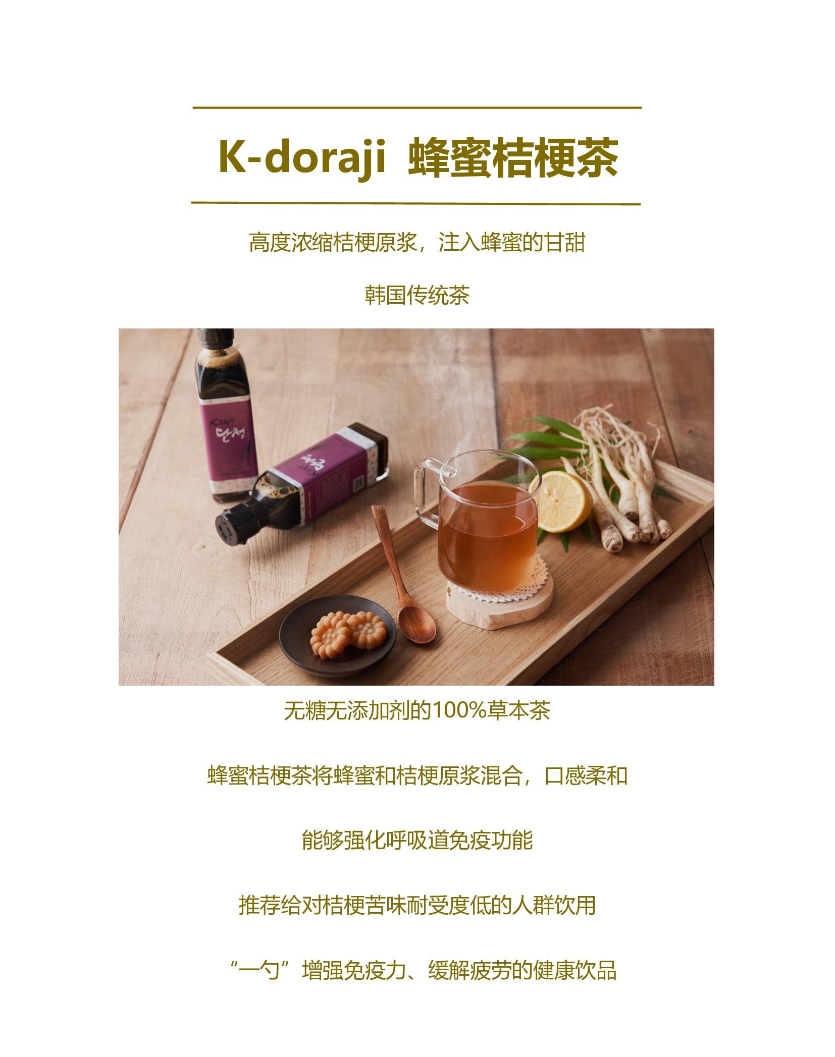 – 以K-doraji的独家原料和技术制成的100%高级桔梗浓缩液– 传递成熟桔梗的药性和甘甜
