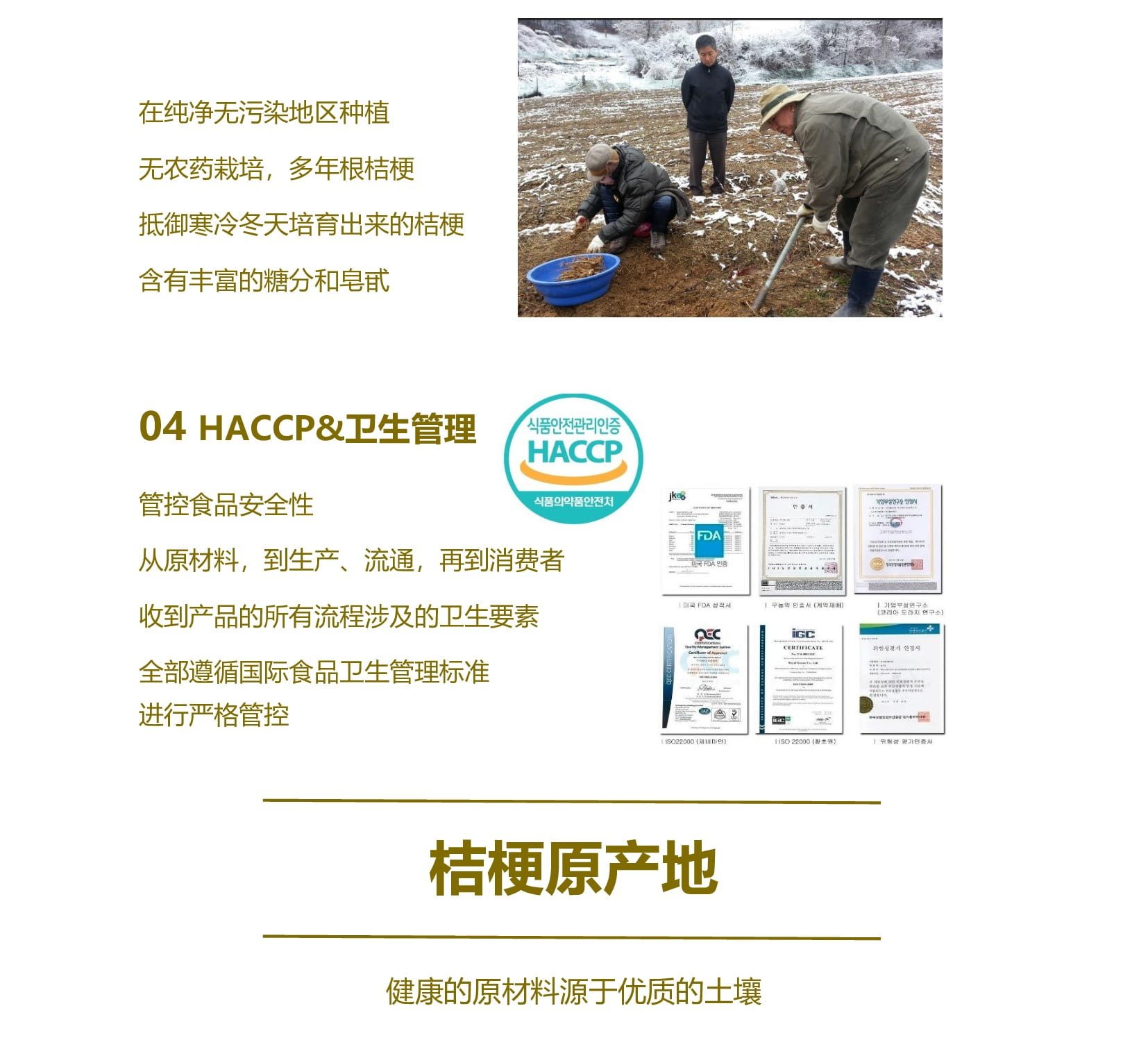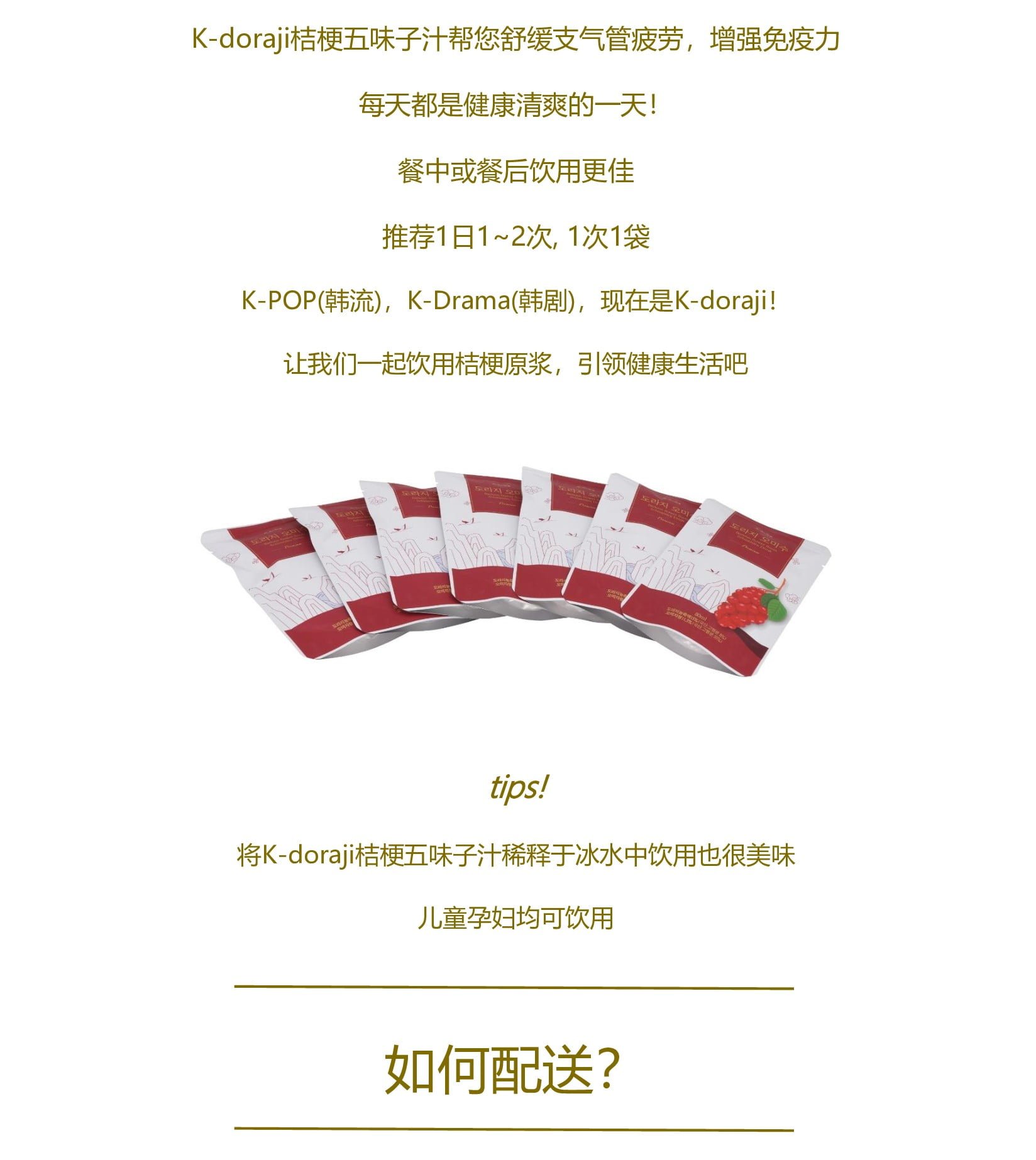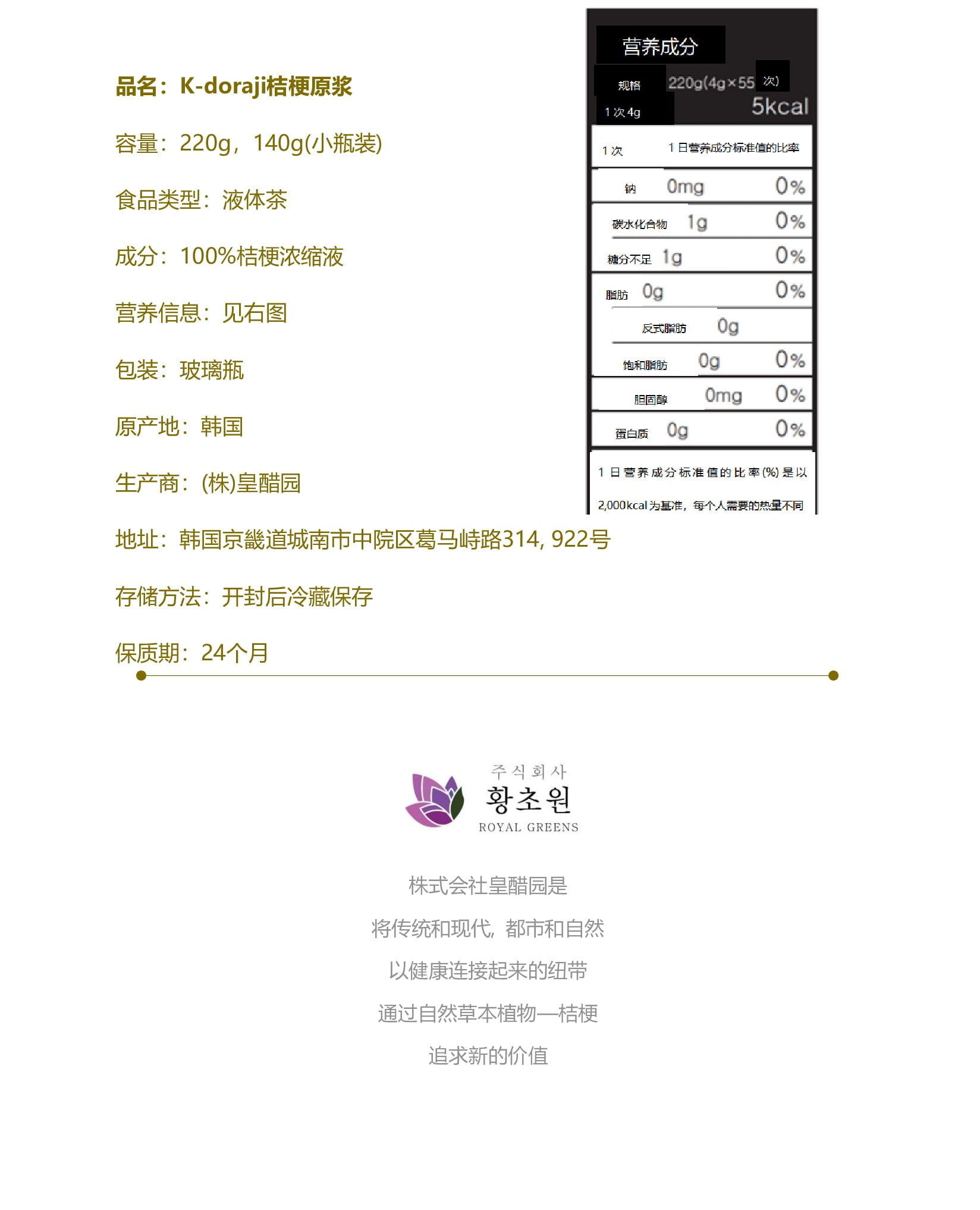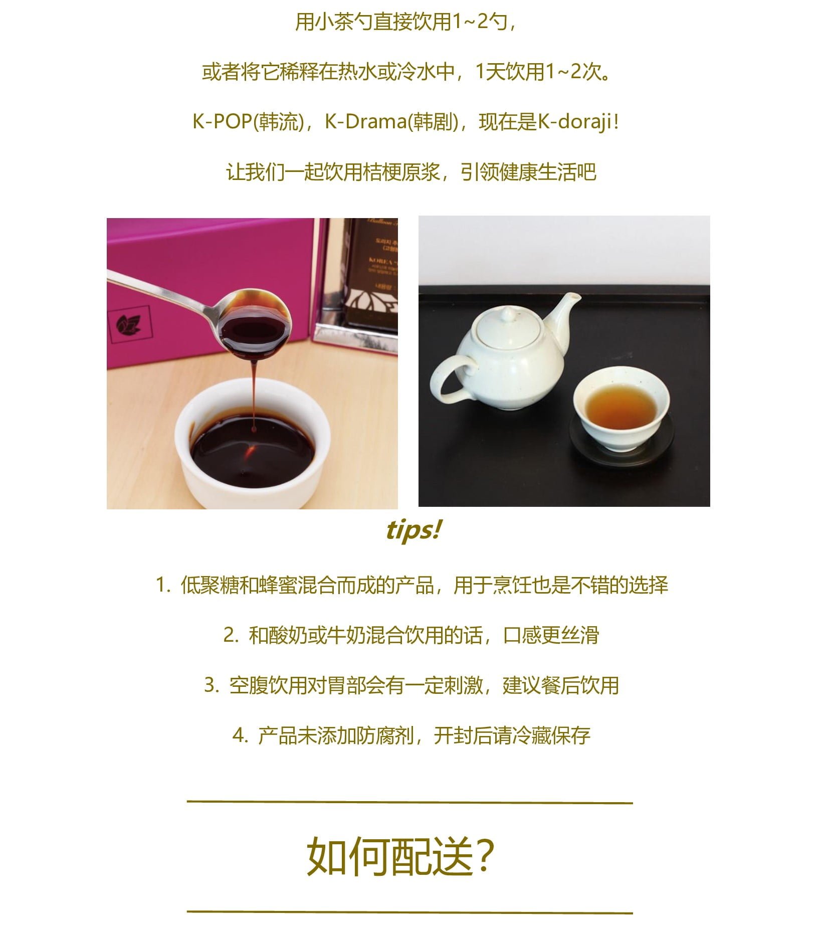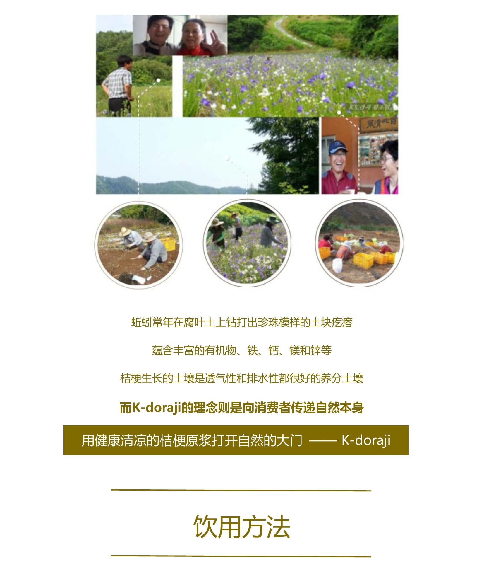 – 以K-doraji的独家原料和技术制成的100%高级桔梗浓缩液– 传递成熟桔梗的药性和甘甜