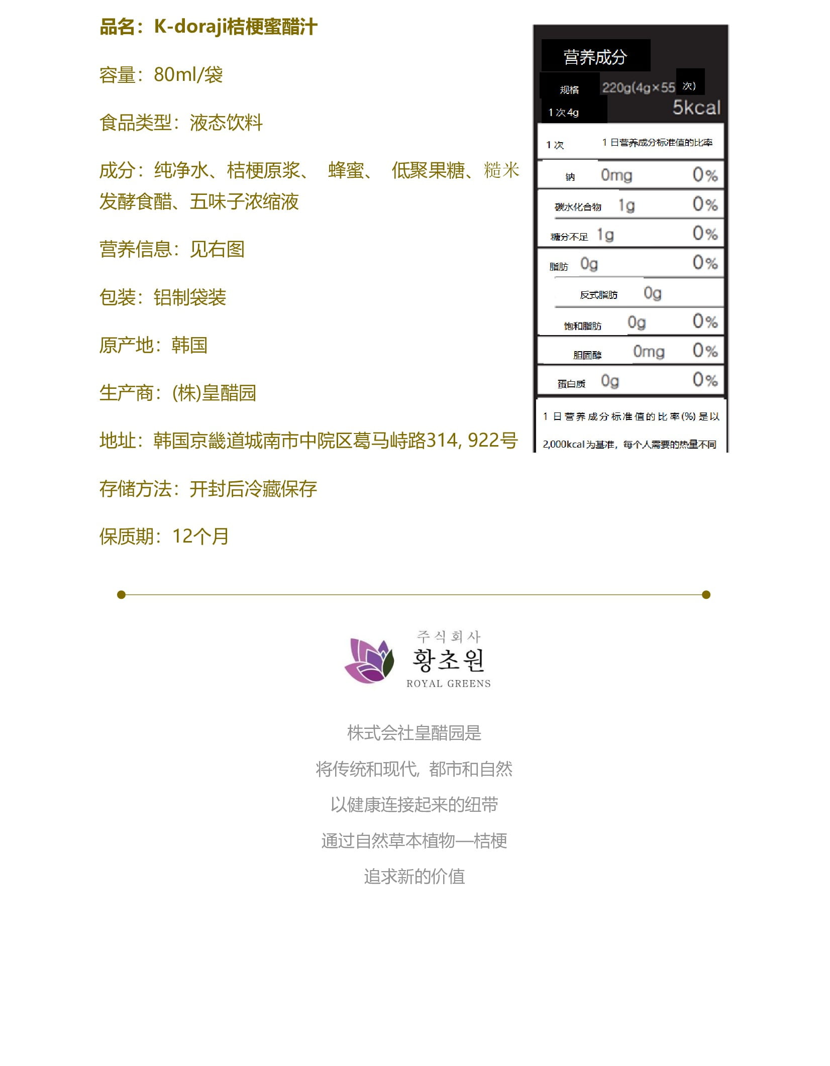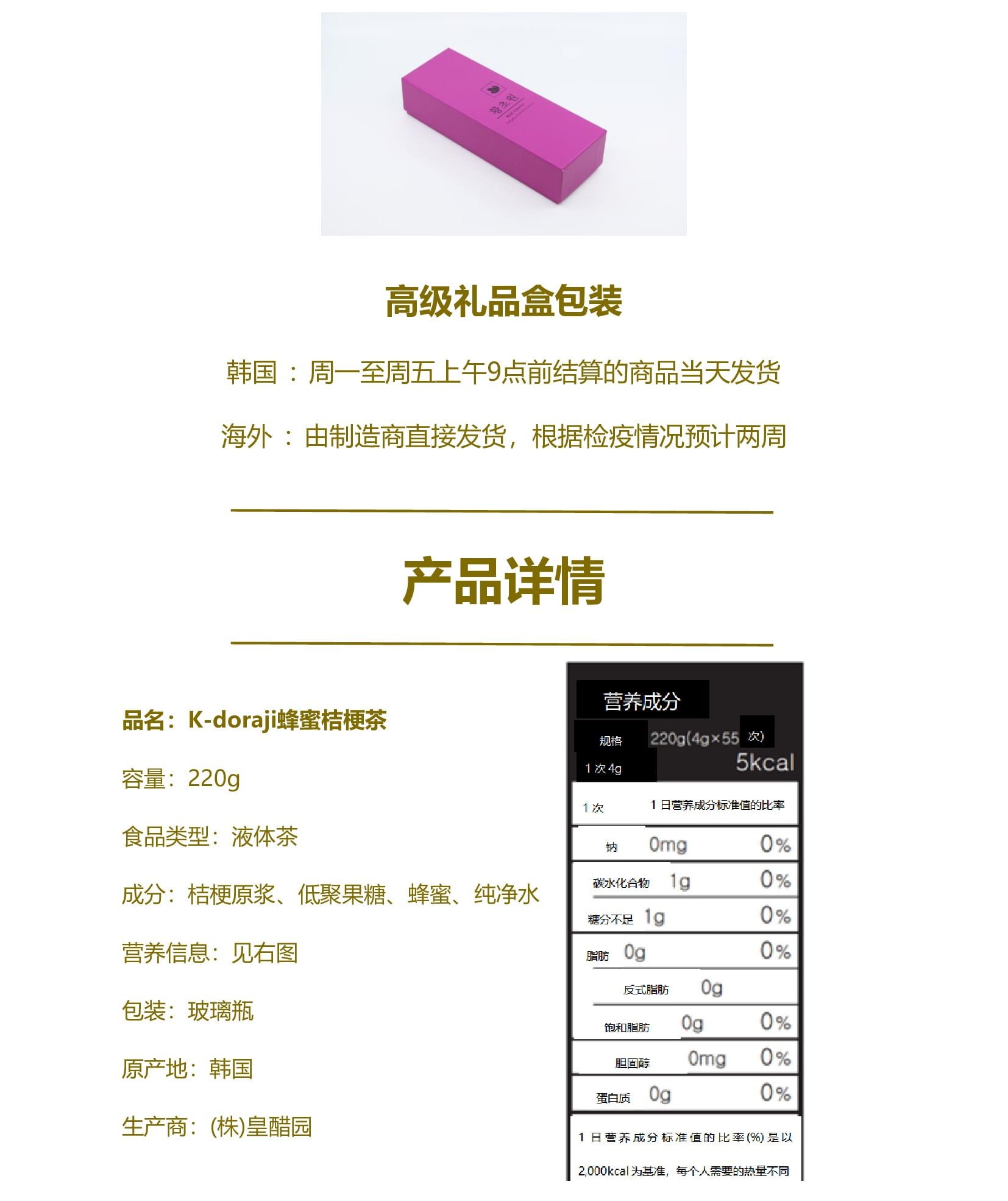 原料: 桔梗浓缩液(韩国产),蜂蜜(韩国产),低聚糖(韩国产)